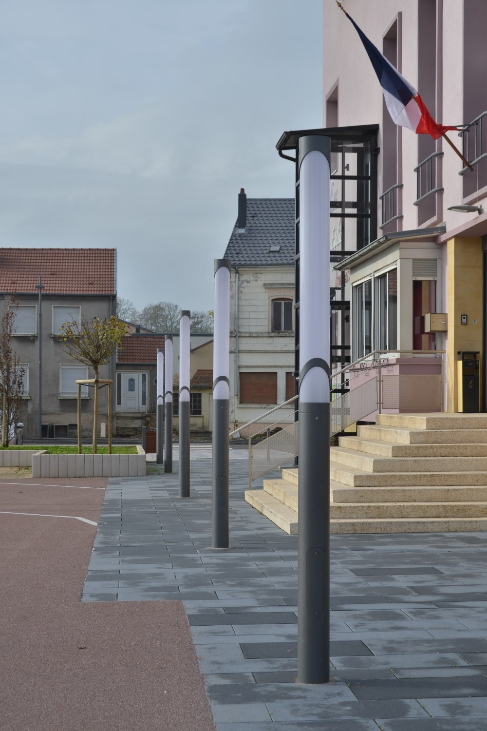 Les bornes et colonnes éclairent au plus près du besoin en soulignant les passages