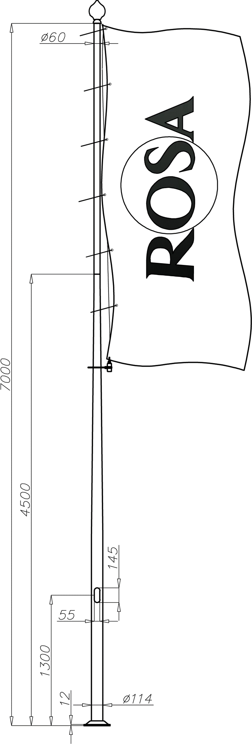 Description : Mat aluminium hauteur 7,0m